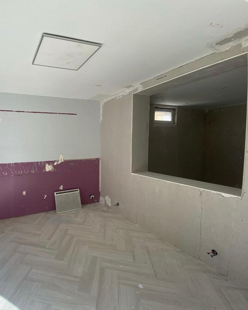 Enfin, nous avons posé un parquet élégant et réalisé une rénovation complète, comprenant enduit et peinture, pour sublimer l’ensemble de l’espace.