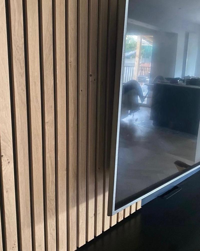 Découvrez notre dernière création : un décor TV en bois sur mesure, accompagné de son meuble suspendu pour un effet moderne et épuré.