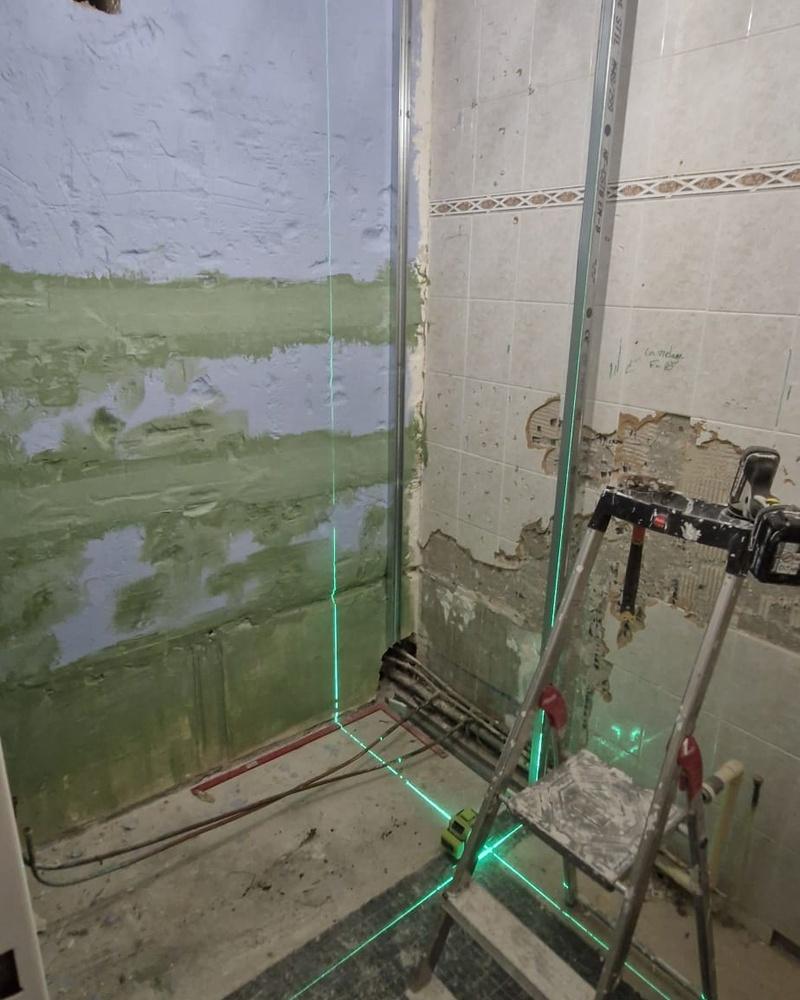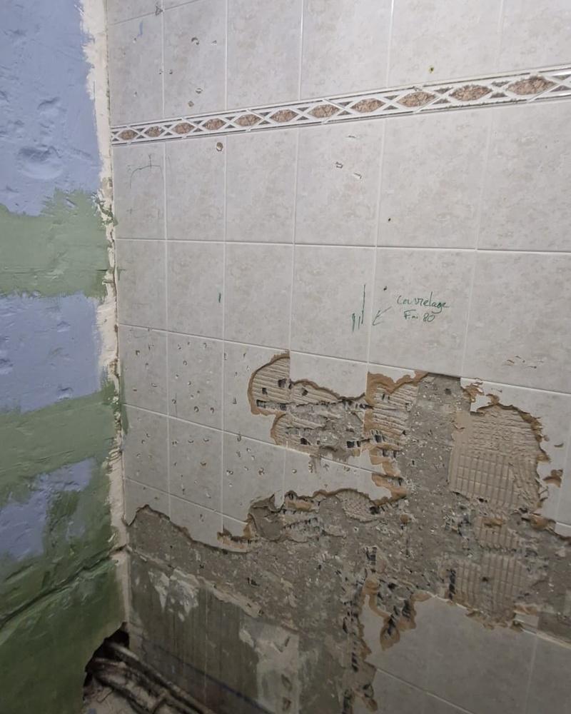 Rénovation d’une salle de bain : plomberie, équipements sanitaires, doublage, électricité, carrelage, enduit et peinture.