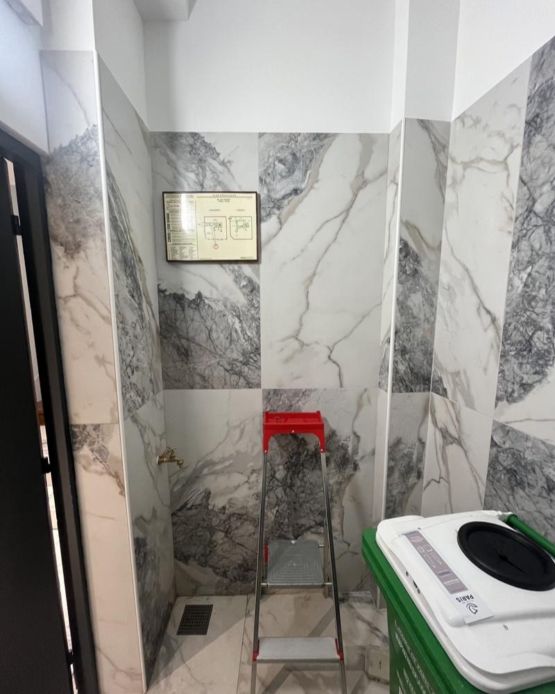 - Local technique : transformation complète avec des matériaux résistants, une nouvelle plomberie et une finition en carrelage effet marbre pour un aspect à la fois pratique et esthétique.