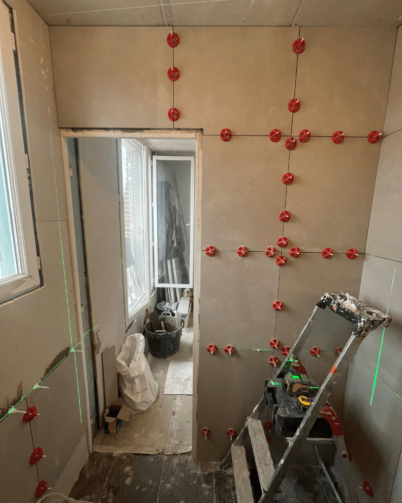 – Pose d’un carrelage mural rectifié mat 60 x 60 cm
