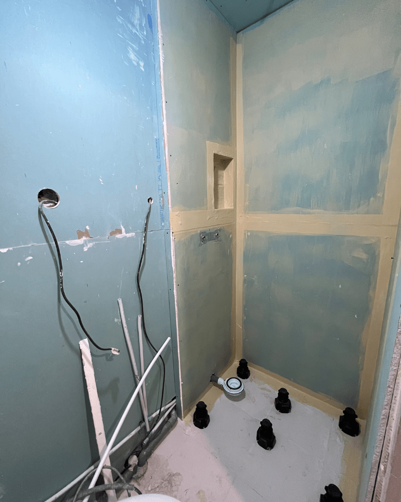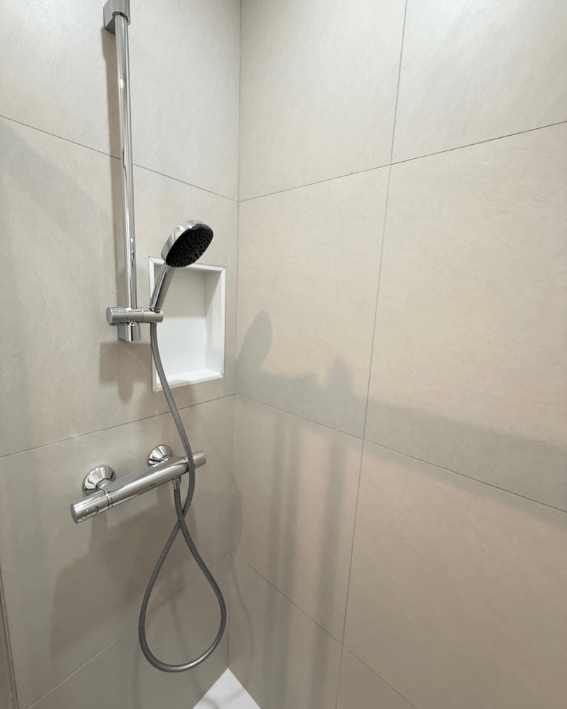 – Douche sur mesure avec niche intégrée pour un rangement pratique et design