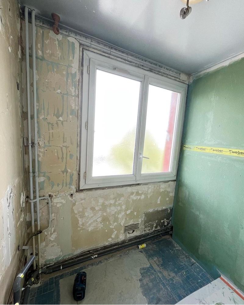 – Dépose complète de l’ancienne baignoire pour un espace optimisé